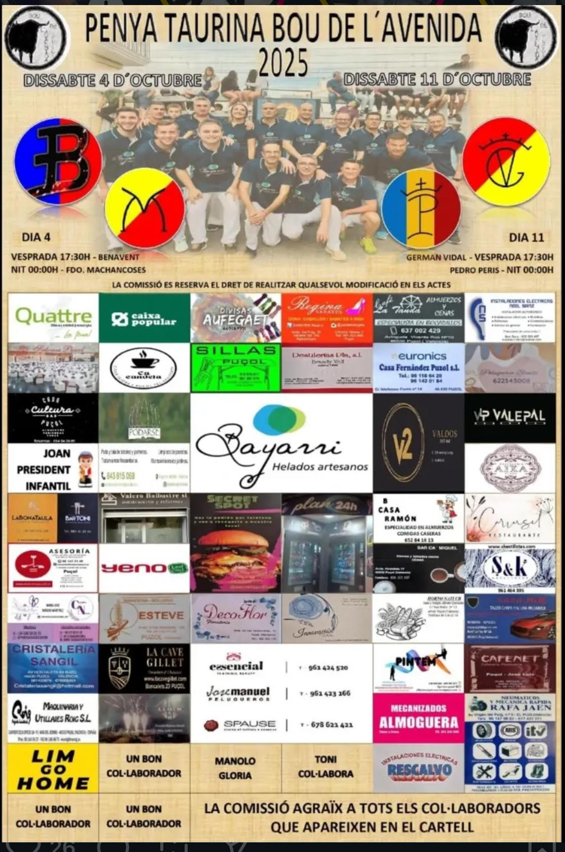 Inicio Eventos - Toros hoy Toros en la calle TOROS PUÇOL 11 DE OCTUBRE 2025